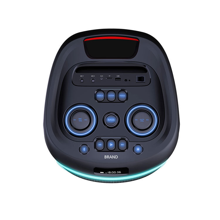 Function | Aux in(3.5mm) USB/TF Card Input; FM Radio, Bluetooth MIC inputx2 BASS, Treble, Mic Volume, Echo control Top Panel Control, EQ Selection, Microphone Priority, Recording |