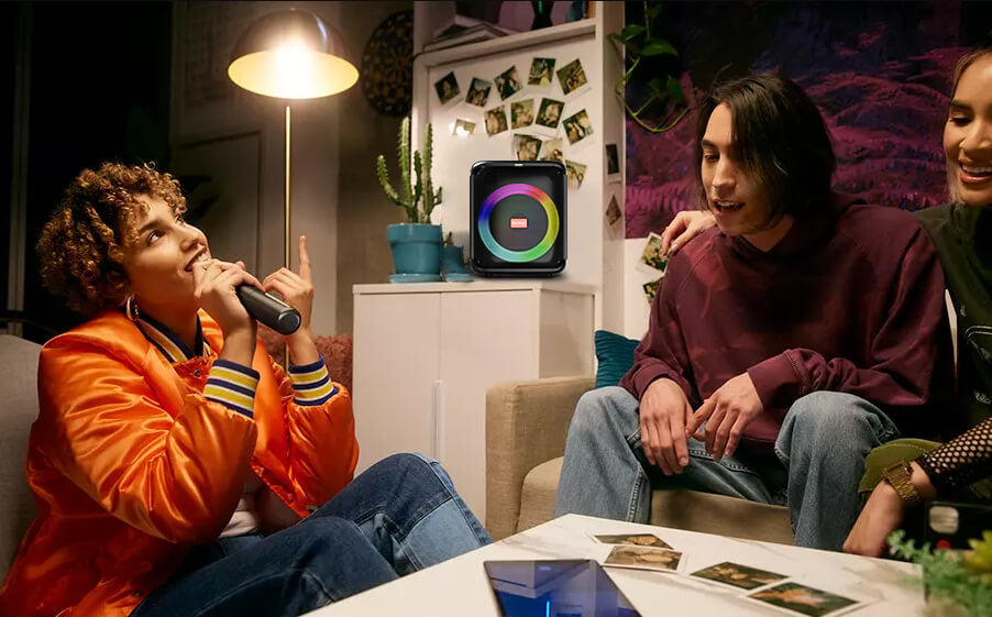 Step into the spotlight. Turn any party into a karaoke party with a wired mic input and unleash the singer within you.